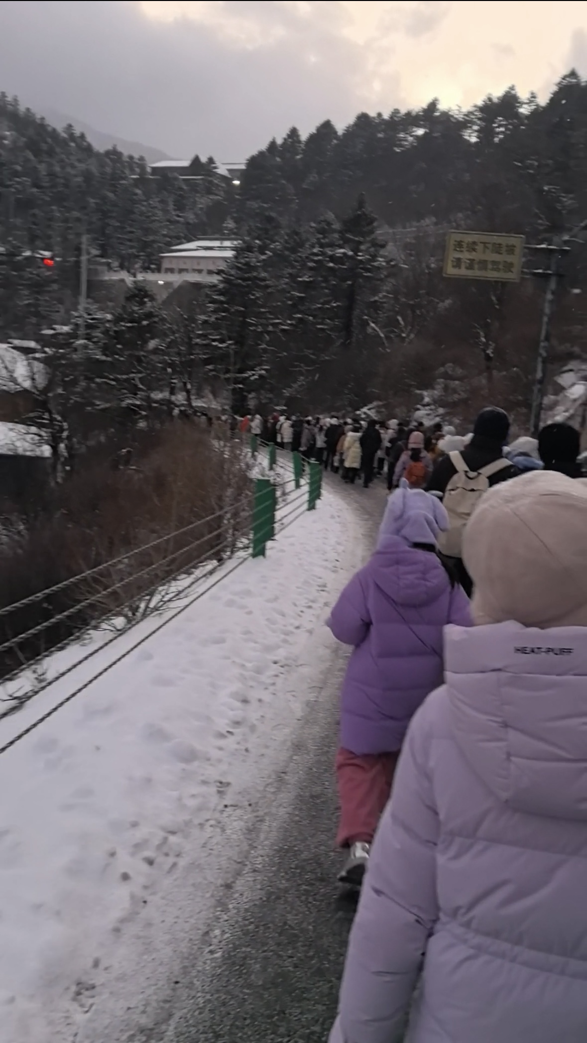 小沈(化名)是1月2日滞留太白山景区的游客之一。她告诉封面新闻记者,上午11点左右,她和朋友从红桦坪往山上徒步时,就开始飘雪了。下午4点左右,一行人准备下山。此时,上板寺的小索道乘坐点已排起了队,小沈一行人等了50分钟坐上索道,而她没想到的是,下索道后,滞留的游客更多。“都是在等摆渡车,有人已经等了一两个小时”。